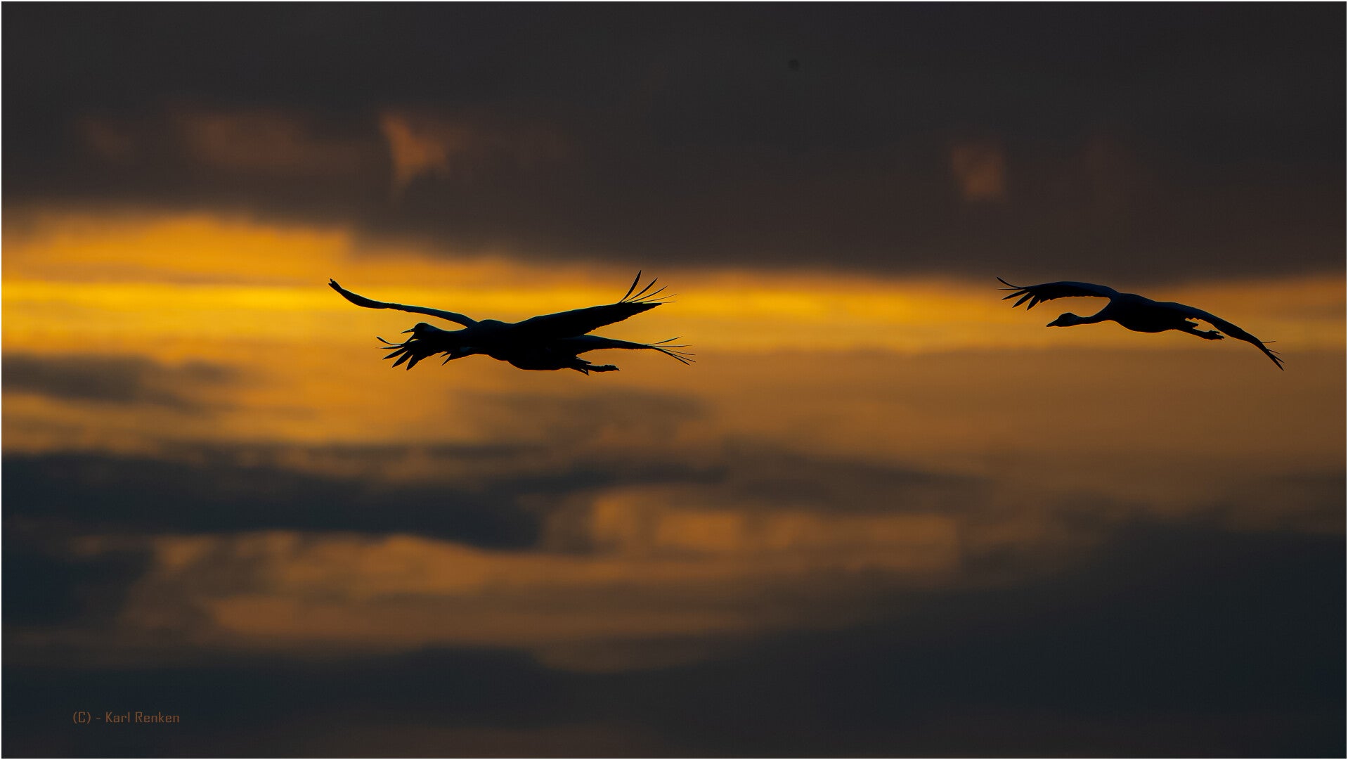 Morgens früh um 6:30 sind wir bei der Tister Moorbahn zum dortigen Aussichtsurm, der vor einem wiedervernässten Moor aufgebaut wurde, gefahren. Wir hatten sehr gutes Wetter und es war auch nicht so warm. Dadurch stiegen die Kraniche beizeiten auf, um zu ihren Futterplätzen zu fliegen! Und dies auch noch bei einem wunderschönen Sonnenaufgang.